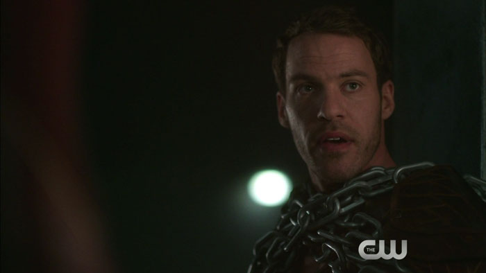 H117A-D01-FLA-110-36The preview clip for next week’s new episode of The Flash features Team Flash and Team Arrow inside the new Arrow lair, as it is part of the two-night Flash/Arrow crossover event — and while they’re down there, it looks like they have Hawkman (Falk Henstchel) in chains!