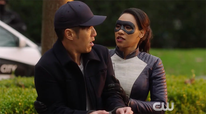 IRIS SUITS UP — Team Flash confront a new bus meta, Matthew AKA Melting Pot (guest star Leonardo Nam), who has the ability to swap people’s DNA. During a battle with Team Flash, Matthew accidentally takes Barry’s (Grant Gustin) speed away and gives it to Iris (Candice Patton). Now, with a new threat unleashed on Central City, Barry must act as the team leader while Iris takes on the mantle of superhero speedster in order to defeat their new foe. Harry Jierjian directed the episode written by Eric Wallace (#416). Original airdate 3/13/2018.